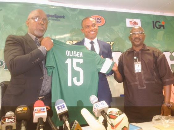 Sunday Oliseh today signed contract to become the new Super Eagles of Nigeria coach. He signed a contract with the NFF which ties him to the Super Eagles until 2020 thus becoming the fifth player in the 1994 class to handle the senior national team after Austin Eguavoen, Samson Siasia, Daniel Amokachi and Stephen Keshi. “It’s a great honour to be coach of this great national team,” said Oliseh at the unveiling ceremony in Abuja. “I’m not coming as a messiah. I’m coming as a man who wants to serve his country and give 150%. “Gone are the days when we had individual players who can win games on their own. But we have potential,” he said. He also laid down the law to players of Nigerian origin on his requirements before they can feature for his team. “No player outside of first division in Nigeria or elsewhere will play for the Super Eagles. We will work together with the technical committee because if we fail, they fail,” he concluded.