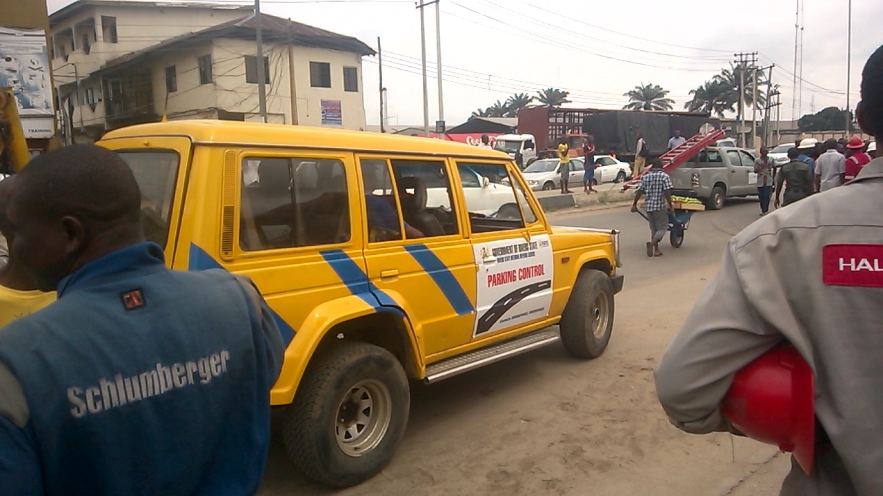Please hide my ID and post. This is happened a few minutes ago at Trans Amadi area of Port Harcourt precisely in front of Halliburton and Schlumberger companies. Both companies (and many others around) did interlocking floors at the front of their offices where staff and visitors park their vehicles. This morning, some agents of Rivers State government with up to 15 vehicles written Park Control on them stormed Schlumeberger first and started towing cars of workers who were inside their offices in commando style. They later came up to the Halliburton end where they were promptly resisted by Halliburton staff with the company’s Mopol team which led to the commotion you can see from the pictures. They said Halliburton has to pay N41 million before they can use their front space for parking.