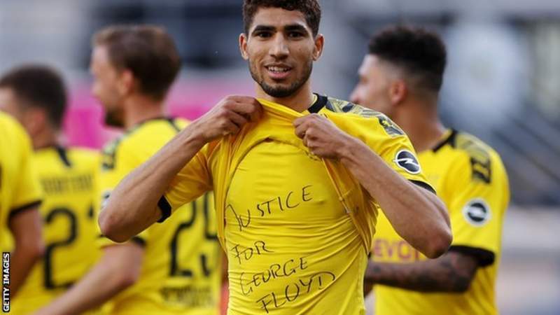 Achraf Hakimi is among several African sportsmen to show support for the late African-American George Floyd after the Morocco international scored in Borussia Dortmund’s 6-1 thrashing of Paderborn. The United States has seen a number of protests in major cities across the country since Floyd, an unarmed black man, died while being restrained by white Minneapolis police officer Derek Chauvin on 25 May.
