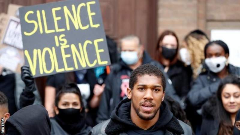 World heavyweight champion Anthony Joshua described racism as a “pandemic” when he addressed protesters at a Black Lives Matter march. The 30-year-old, wearing a knee brace as a “precautionary measure”, read a poem and spoke in front of hundreds of people in his home town of Watford.