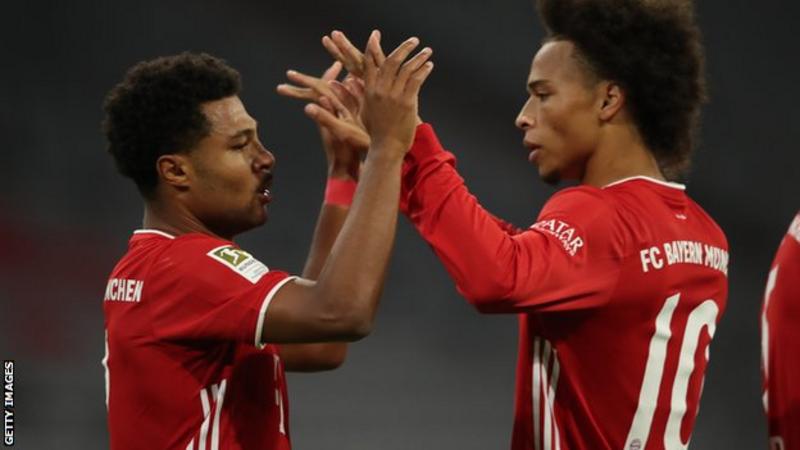 Leroy Sane, making his debut after a £44.7m move from Manchester City, assisted two of Gnabry’s goals. Hansi Flick’s side have won 22 games in a row. Robert Lewandowski, Leon Goretzka, Thomas Muller and 17-year-old Jamal Musiala scored their other goals. Bayern’s record now reads 30 wins and one draw since their last defeat in any competition on 7 December. They won last season’s treble of Bundesliga, German Cup and Champions League. Schalke, in contrast, have not won in the Bundesliga since 17 January and lost seven of their nine games following the 2019-20 season restart. Bayern had hoped to have a crowd of 7,500 for their season opener – with clubs from some states allowed to have fans this weekend – but that was blocked by Munich’s mayor. Gnabry scored in the fourth minute as he found space outside the box before curling home – and Bayern never looked back. This was the biggest victory any team have managed on the opening weekend of the Bundesliga. Goretzka drove in a low second from Muller’s lay-off and Lewandowski scored a penalty after he was fouled. The 32-year-old Pole scored 55 goals in 47 games last season. Sane then set up Gnabry to score into an empty net from 20 yards for his second goal. They paired up again with Gnabry slotting the ball through the goalkeeper’s legs. Muller scored next, as he volleyed home from Lewandowski’s rabona cross. Germany international Sane ran on to a through ball from the halfway line before slotting home. That was his first club goal since scoring for City against Manchester United in a 2-0 derby win in April 2019. Teenager Musiala, who played for two minutes last season, came off the bench and cut in from the wing before adding an eighth. He is Bayern’s youngest goalscorer in Bundesliga history. That was the second time Bayern managed eight goals in a game this year, having smashed Barcelona 8-2 in the Champions League quarter-finals.