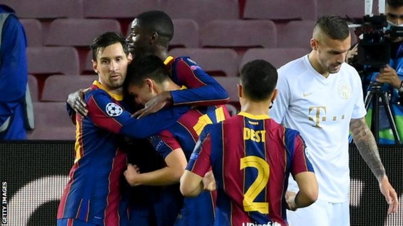 Lionel Messi scored in a joint record 16th Champions League season and 17-year-old Pedri netted his first senior goal as Barcelona beat Ferencvaros.