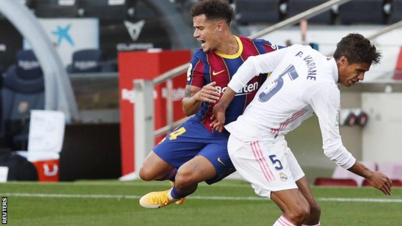 The length of the 28-year-old’s absence will “depend on how the injury evolves”, according to Barca. The Brazilian played all 90 minutes of Barca’s 3-1 loss to Real Madrid in El Clasico on Saturday. The ex-Liverpool player spent the 2019-20 season on loan at Bayern Munich, and has made five starts this season.