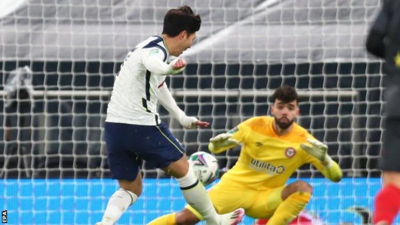 Jose Mourinho moved Tottenham Hotspur to within one game of their first trophy in 13 years as they earned a Carabao Cup semi-final 2-0 win over Brentford.