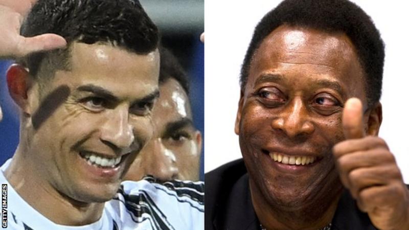 Pele congratulated Cristiano Ronaldo after the Portugal forward’s hat-trick against Cagliari took him past the Brazilian legend’s tally of goals scored in official matches.